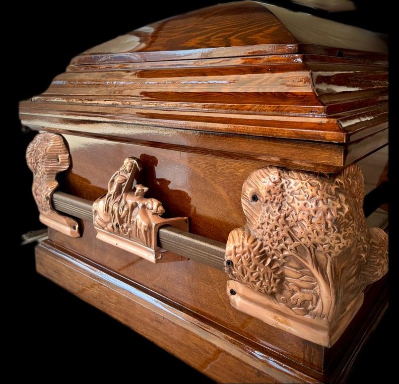 ATAÚD DE MADERA CON MITAD TALLADA